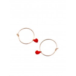 Orecchini Cerchio in Argento 925 bagnato oro rosa con Charms cuore smalto rosso